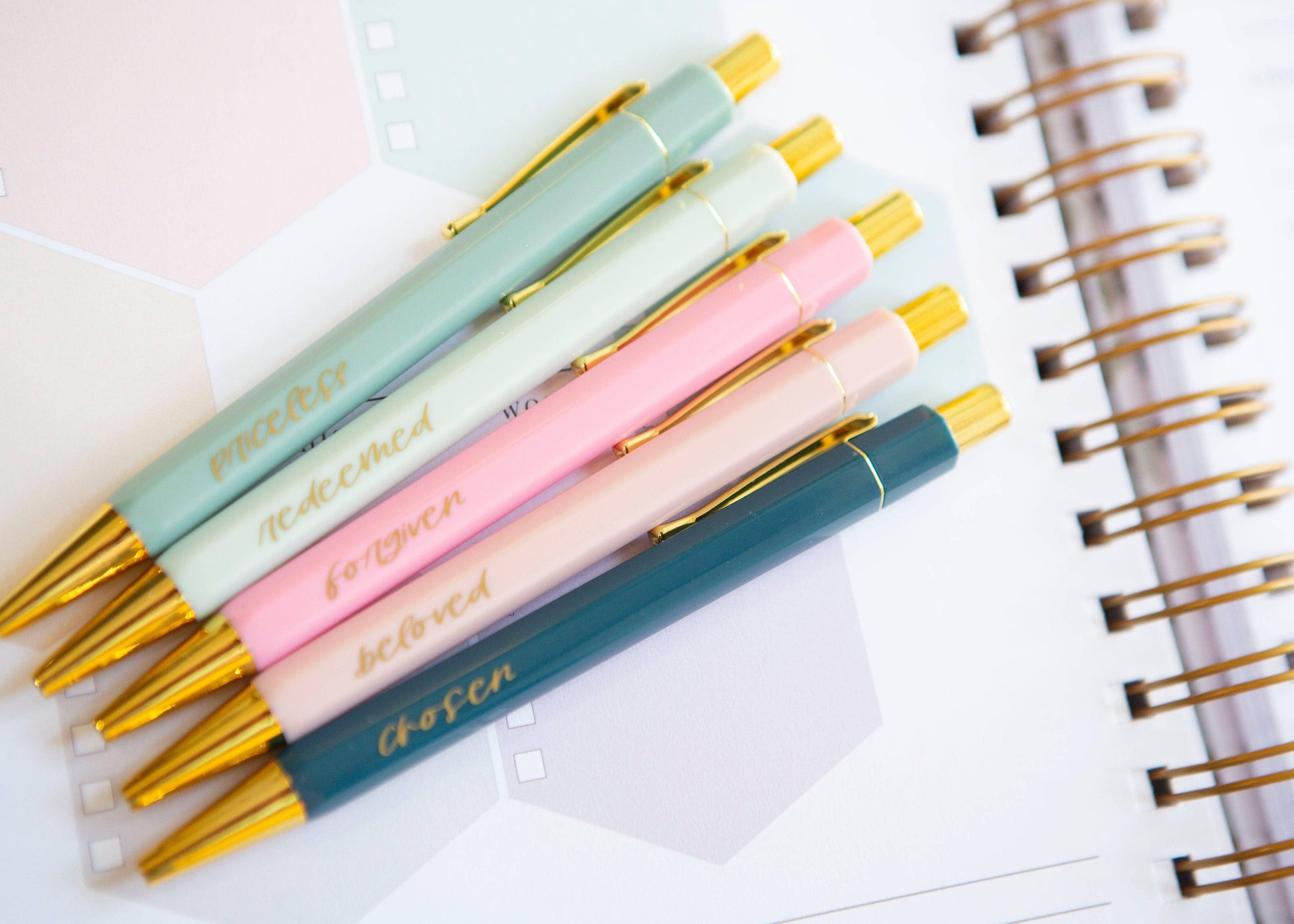 Write in style with these inspirational Christian hymn pens! From planning your week to studying the Bible, these smooth-writing, chic hexagon pens are sure to become your favorite writing tool.