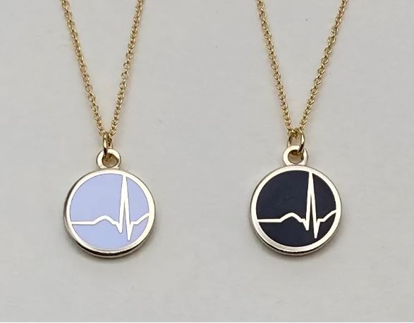 "Come Alive!" Small Enamel Pendant (0.50 inches in diameter) in non-precious metal with gold tone plating and 18-inch 14k gold-filled cable chain with spring ring clasp. As a flatline into a heartbeat, this piece, “Come Alive!”, symbolizes moving from death into life. There are many deaths we experience in our lives – physical, emotional, mental, spiritual. “Come Alive!” captures the moment we move from that death into new life. It is both an invitation to hope and a celebration of beginning anew.