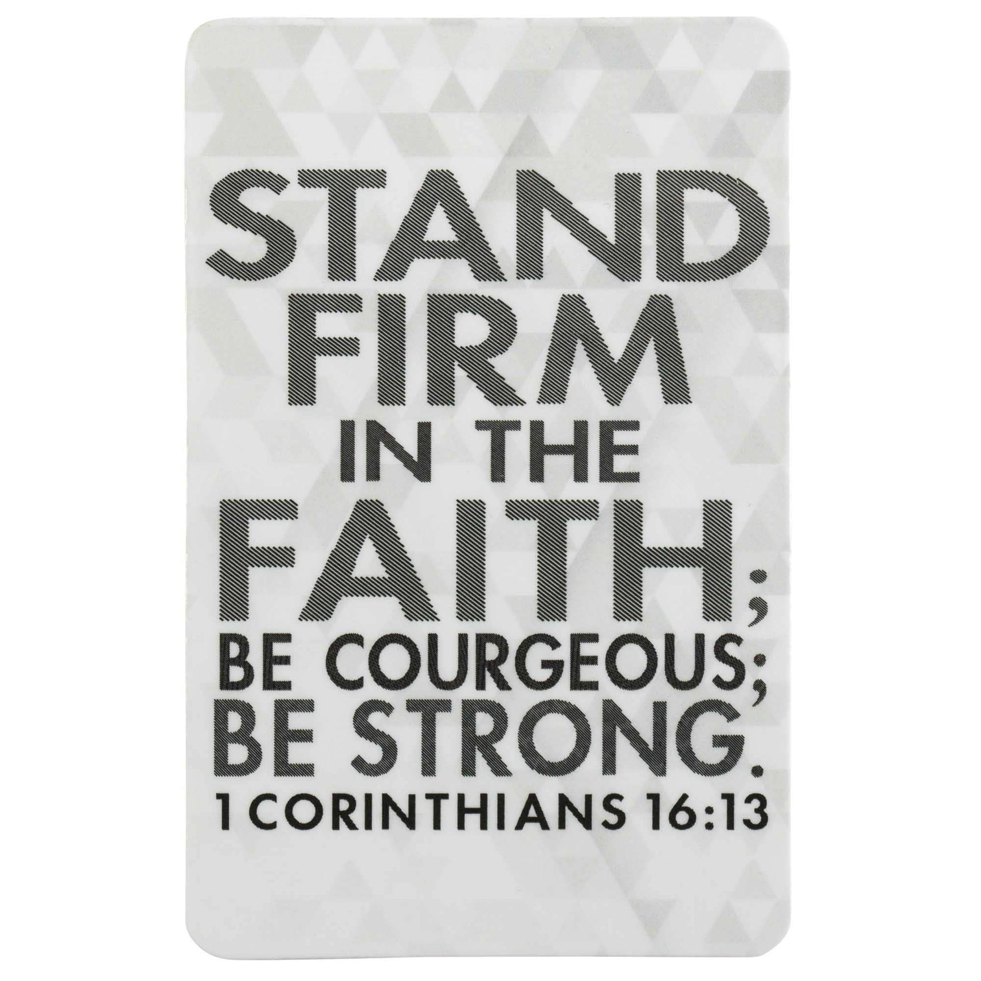 Pocketcard Style Bookmark Features 1 Corinthians 16:13: Stand Firm In The Faith; Be Courageous; Be Strong.